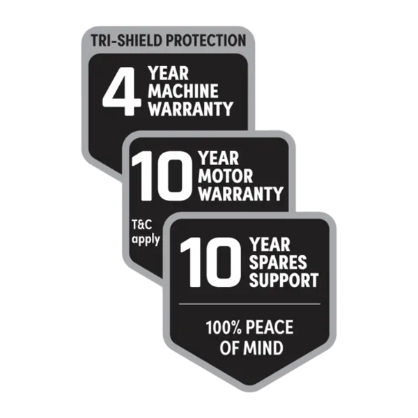 4 Years Super Warranty + 10 Years Spare Parts Support + 10 Years Motor Warranty